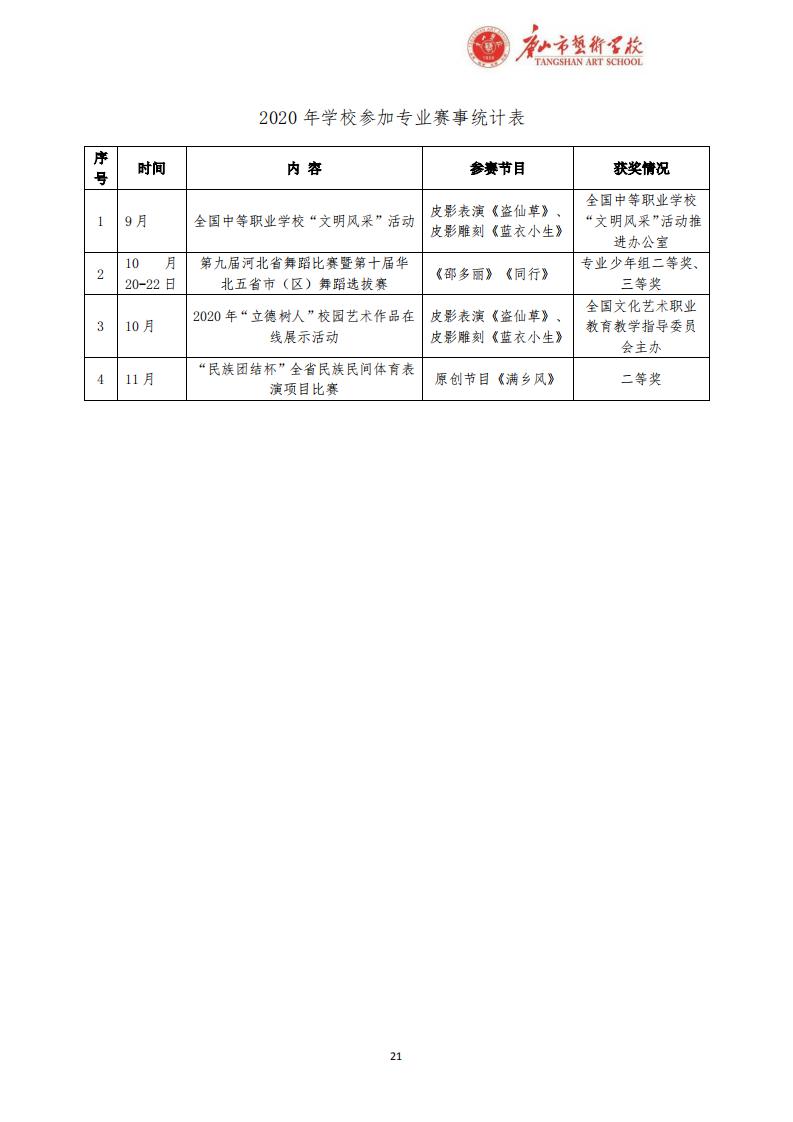 唐山市艺术学校2020年度质量报告
