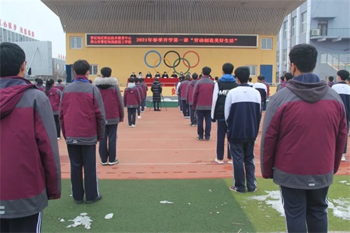 3月3日上午,曹妃甸区职教中心举行2021年春季收心思学、学期表彰暨开学第一课教育大会。校长王怀平、副校长刘辉、杨景悦及相关部门主任、全体班主任、学生参加了会议。