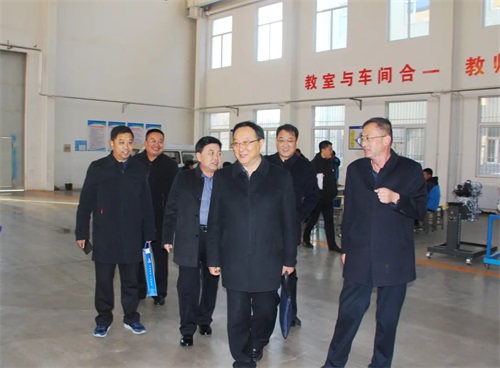 市教育局高教职称处高海波、县教育局领导赵庆杰、学校领导班子及相关部门负责人陪同调研。