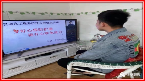 2022年4月25日,迁安职教中心自动化工程系成功举行了心理健康讲座,为学生穿上了抗疫心理防护服。讲座以钉钉直播形式进行,全系师生听取讲座。
