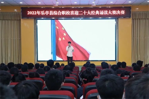 雅言传承文明,经典浸润人生。乐亭职校秉承红色文化育人理念,通过诵读、书写等形式,从红色经典中汲取智慧力量,彰显时代精神,提升中职生语言文字应用能力和语言文化素养,展现全校师生对中华经典的传承与创新。乐亭职校在全校范围内组织了“诵读中国”和“笔墨中国”诵写大赛,营造亲近经典、热爱经典,喜迎党的二十大的良好氛围。10月14日,“诵读中国”经典诵读大赛决赛在多功能厅隆重举行,学校书记、校长李世春携班子成员、各部门主任莅临现场。