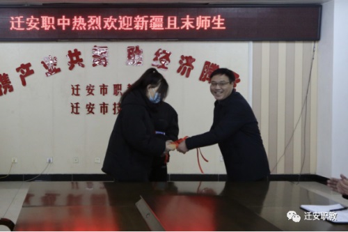 2023年2月9日,迁安职教中心组织2023年新疆且末县师生见面会,以真情迎接亲人,用书香润育学子。郑立冬校长,乔玉丰副校长,相关处室主任、班主任,新疆且末县教师甄永生,新疆且末20名学子,参加了见面会。