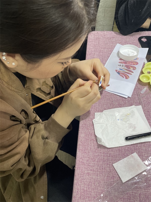 接到上级比赛通知后,雷雨轩仅仅在校经过了一个多月的集训,想要在比赛中取得成绩,就意味着必须在“台下”付出常人难以想象的艰辛,由于对该项目比赛经验的空白,只能同指导老师反复多次的研究技术文件,上网查阅往届比赛规则与视频,在集训过程中,学校领导给与了巨大的支持与鼓励,为人才的培养提供了充足的资金保障和服务支持。专业部张善瑞和肖盼英主任也经常一同研究技术文件,提供赛前保障。在许多项目都是零基础的巨大压力下,张善瑞主任牺牲午休时间每天中午接送雷雨轩和吕爽老师到唐山成远造型请企业专家进行提升训练,回到学校后雷雨轩同老师再反复观看教学视频,不断总结练习。比赛项目中美甲环节需要选手用丙烯在甲片上临摹绘画,对于没有任何美术基础的雷雨轩来说难度最大,她经常同吕爽老师一同在实训室一练就是一整天,常常忘记了休息与吃饭的时间,雷雨轩经常因练习过程中的失误偷偷掉眼泪,她说“看到校领导和老师对我寄予的厚望,我真的想为学校和老师争光。”