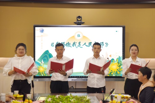 张晨、李卓、孙玮悦、沈杨四位青年教师表演配乐诗朗诵《我骄傲,我是人民教师》。