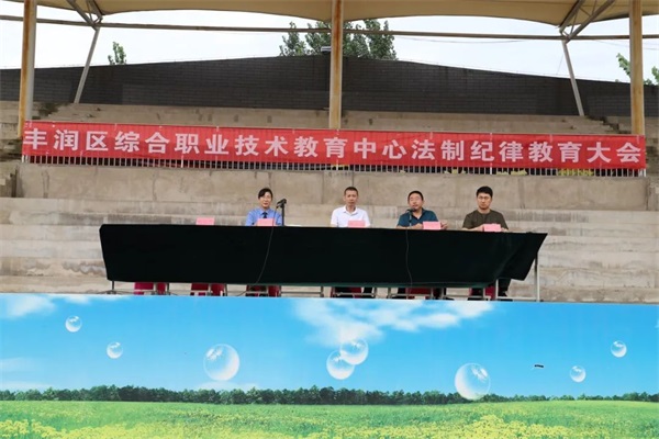 为全面提高学生素质,加强学生常规管理,养成同学们良好的文明行为习惯,进一步增强同学们的纪律意识,规范同学们在校期间的行为,以更加饱满的精神状态、积极的学习态度投入新学期规范、自律的学习生活,丰润职教中心召开本学期第一次法治纪律教育大会。