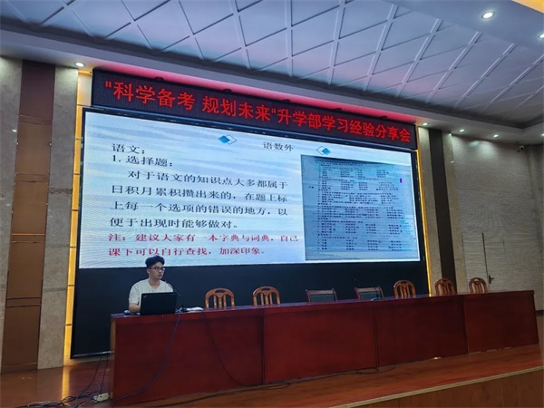 9月11日晚自习,玉田职教中心升学部开展的“科学备考,规划未来”学习经验分享会在阶梯教室顺利举办。升学部2022级全体同学和班主任参加,会议由年级主任章佳伟主持。