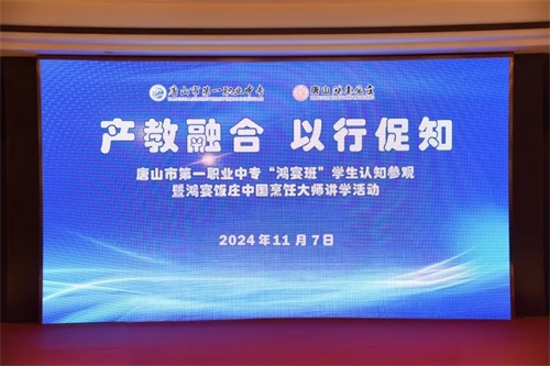 为进一步深化校企合作,优化产教融合合作模式,增强学生对专业与岗位的认知,精准对接岗位需求,11月7日,唐山一职专带领中餐烹饪专业学生来到唐山老字号鸿宴饭庄开展认知参观暨唐山鸿宴饭庄中国烹饪大师讲学活动。唐山鸿宴饭庄总经理何宝良、副总经理赵莉及企业相关部门领导、唐山一职专校长陈加光、副校长魏杰及学校相关部门领导出席活动,22级、23级、24级鸿宴班师生共同参加。