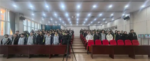 活动采用现场观看和网络课堂同步直播的方式进行,主会场设在崇德楼一楼阶梯教室,由部分教师及学生代表参加;分会场为各班教室,同学们在班主任的带领下认真观看直播。
