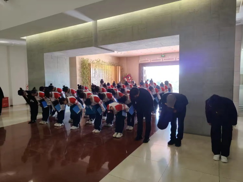 师生们整齐列队,怀着崇敬之心步入李大钊纪念馆。献花仪式庄重举行,程艳华、宋男男、王泽、张士博四位老师代表师生献上花篮,副校长弭洪涛和政教处主任程艳华整理挽联,全体人员深深鞠躬,向革命先烈致以最崇高的敬意,寄托对李大钊同志的无限追思。