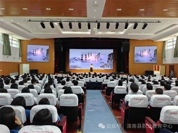为弘扬中华优秀传统文化,厚植家国情怀,5月27日,滦南县职业教育中心隆重举行“诵读中华经典 传承爱国精神”端午诗词朗诵会。出席活动的领导有:校党委副书记、校长杨会军,副校长杨建军、张玉林、孟凡永、张新军以及各部门负责人。400余名学生观摩朗诵会。