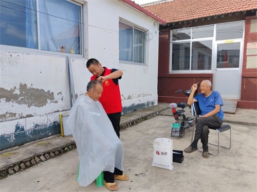 王建宇老师是每一次“融行”志愿服务中一张闪亮的名片,在亮水桥村委会院内,村里老人再次对他的理发手艺连连赞许,他用娴熟的技艺与亲切的交流让村委会小院充满欢声笑语。