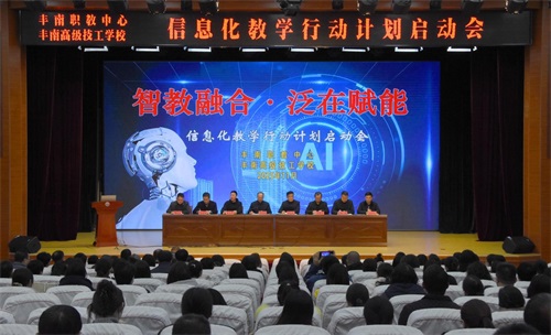 2025年11月7日下午,丰南区职教中心(丰南高级技工学校)在学校报告厅召开“信息化教学行动计划”启动大会,正式吹响以数字化赋能职业教育高质量发展的号角。学校领导班子、全体中层干部、任课教师及合作企业超星公司代表齐聚一堂,共同见证这一重要时刻。会议由学校校长助理、办公室主任郑少东主持。