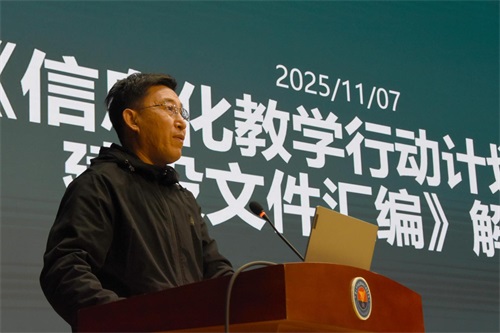 随后,党总支委员、副校长董立群同志对《信息化教学行动计划资源建设文件汇编》进行了详细解读。他提出,学校将用三年时间,围绕“课程精品化、资源体系化、考试智能化、教学泛在化、素养专业化”五大目标,实施精品课程跃升、专业资源库建设、智能考试体系建设等七大攻坚工程,构建“课程—资源—考评”三位一体的智慧教学生态,打造可复制、可推广的“丰南模式”。