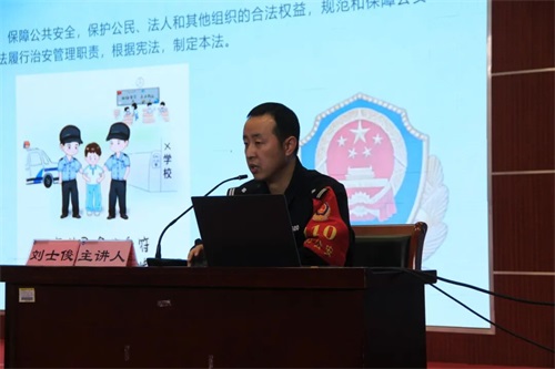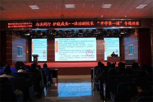 为增强学生法治观念,预防和减少未成年人违法犯罪,营造平安和谐的校园环境,3月11日下午,曹妃甸区职教中心(高级技校)特邀唐海镇派出所警官、学校法治副校长刘士俊走进校园,开展以“新旧《治安管理处罚法》关于未成年人条款的变化”为主题的法治“开学第一课”专题讲座。全校近千名师生到场聆听。