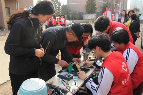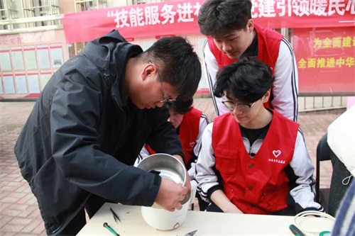 活动现场暖意融融。党员教师充分发挥专业优势与先锋模范作用,凭借扎实的实训教学功底与实操经验,为社区居民逐一排查小家电故障。从洗地机、电水壶的电路检修,到电饭煲、电磁炉的零件更换,党员老师们认真检查故障、仔细维修、耐心解答居民的疑问,手把手向学生传授维修技巧与安全规范。学生志愿者们以严谨的态度跟随学习,主动承担配件整理、工具递送等辅助工作,在实践中深化技能应用,展现出青年学子勤学善练、笃行实干的良好风貌。此次共修理小家电10余件,社区居民纷纷表示,感谢学校师生的帮助,解决了他们的实际难题。