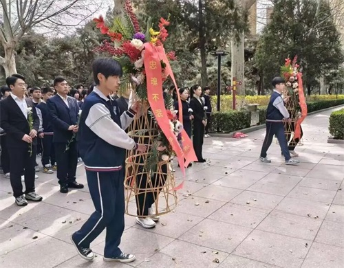 学生代表向革命先烈敬献花篮,动作庄重而虔诚,将对英烈的深切告慰寄托其中。