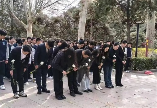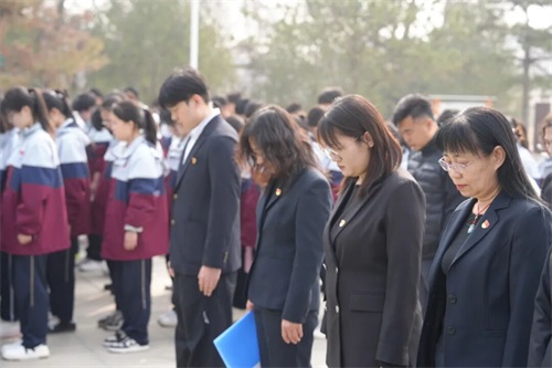 全体师生肃立默哀,追思英烈功绩,垂首沉思,在静默中追忆英烈们为民族解放、人民幸福所做出的伟大牺牲,在追思中感悟初心使命,让英烈精神深深镌刻在心中,接受精神的洗礼与升华。
