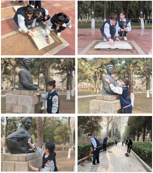 献花结束后,大家纷纷拿起清洁工具,认真擦拭烈士墓碑、清扫烈陵园。动作轻柔,不放过一丝尘埃,以实际行动缅怀先烈、致敬英雄,用真诚守护着这片精神家园的洁净与庄严。