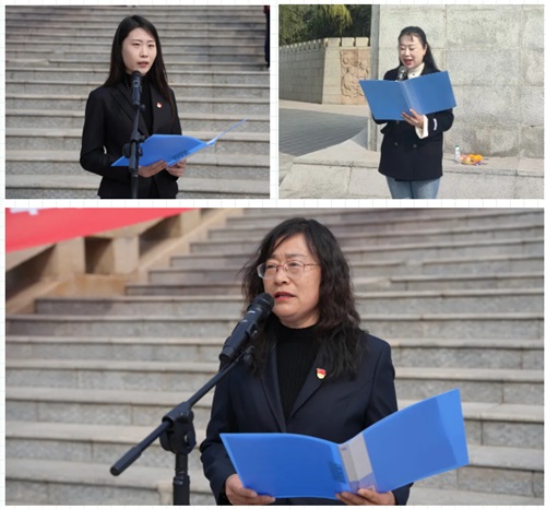 全体师生高举右拳,齐声宣誓。誓言铿锵有力、掷地有声,既彰显了传承英烈遗志、坚守理想信念的坚定决心,也表达了新时代师生奋勇争先、勇担使命的赤诚之心,将对英烈的缅怀转化为奋发向上的强大动力。