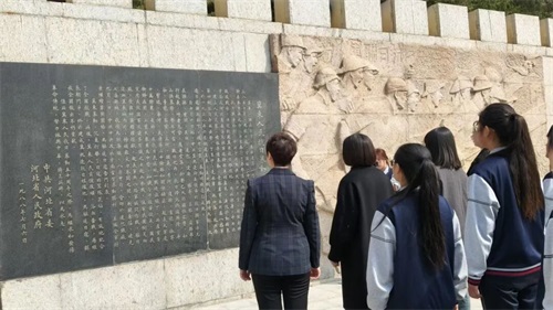 全体师生有序绕行纪念碑瞻仰,仔细观摩碑上铭文。大家放慢脚步,凝视碑身镌刻的文字,在缅怀先烈事迹中汲取奋进力量,进一步坚定了理想信念,让红色基因融入青春血脉。