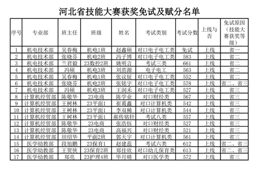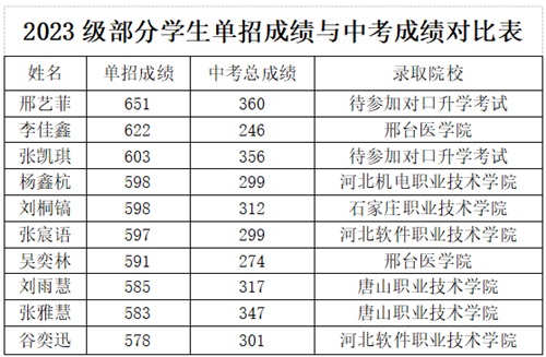学校坚持以赛促学、以赛促升,17名学子凭省赛佳绩直升高职院校。其中,赵鑫硕同学获省赛一等奖,成功被唐山工业职业技术大学录取;7名省赛二等奖获得者技能考试满分赋450分,9名省赛三等奖获得者赋分405分;5名同学凭高级工证书免试升学。